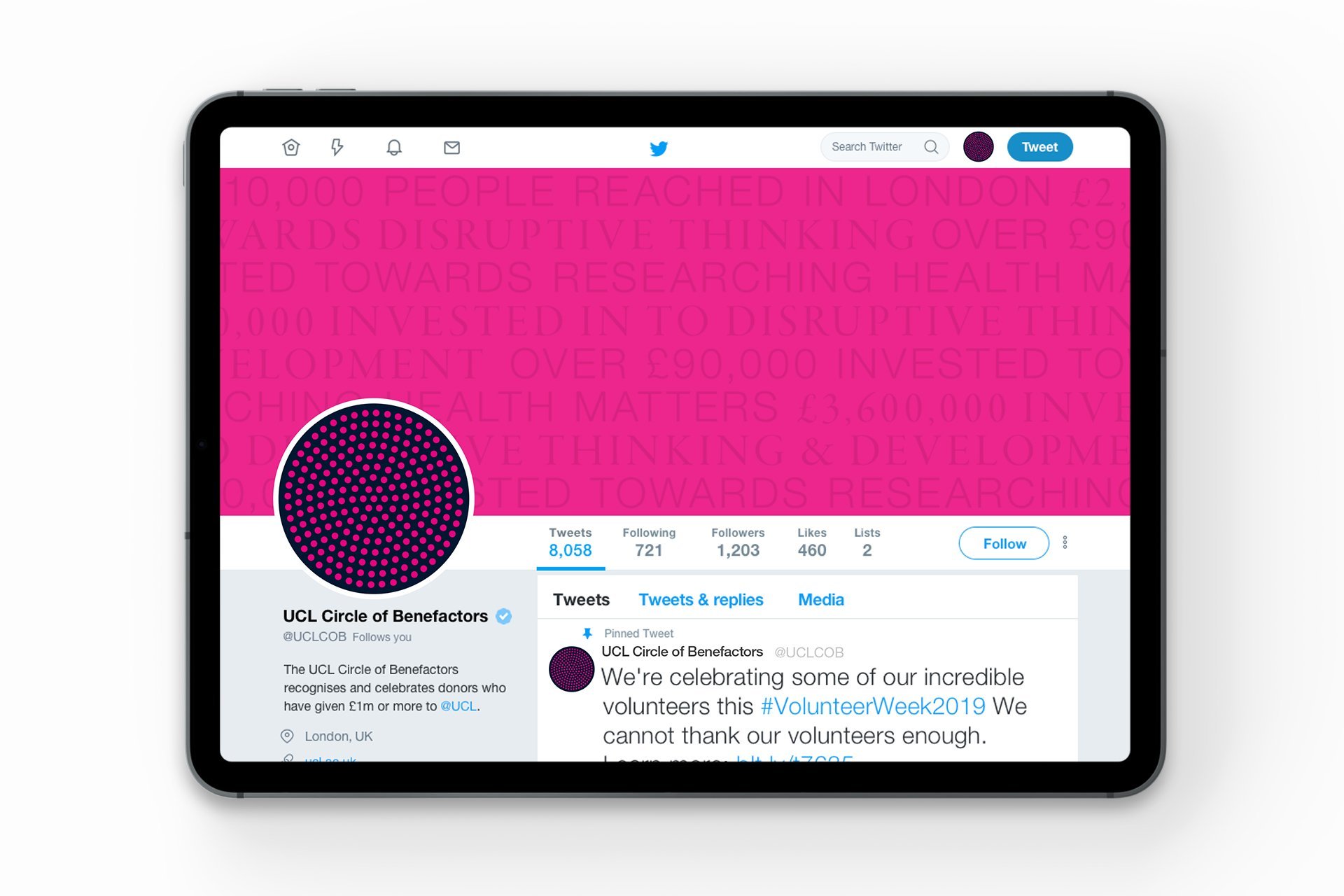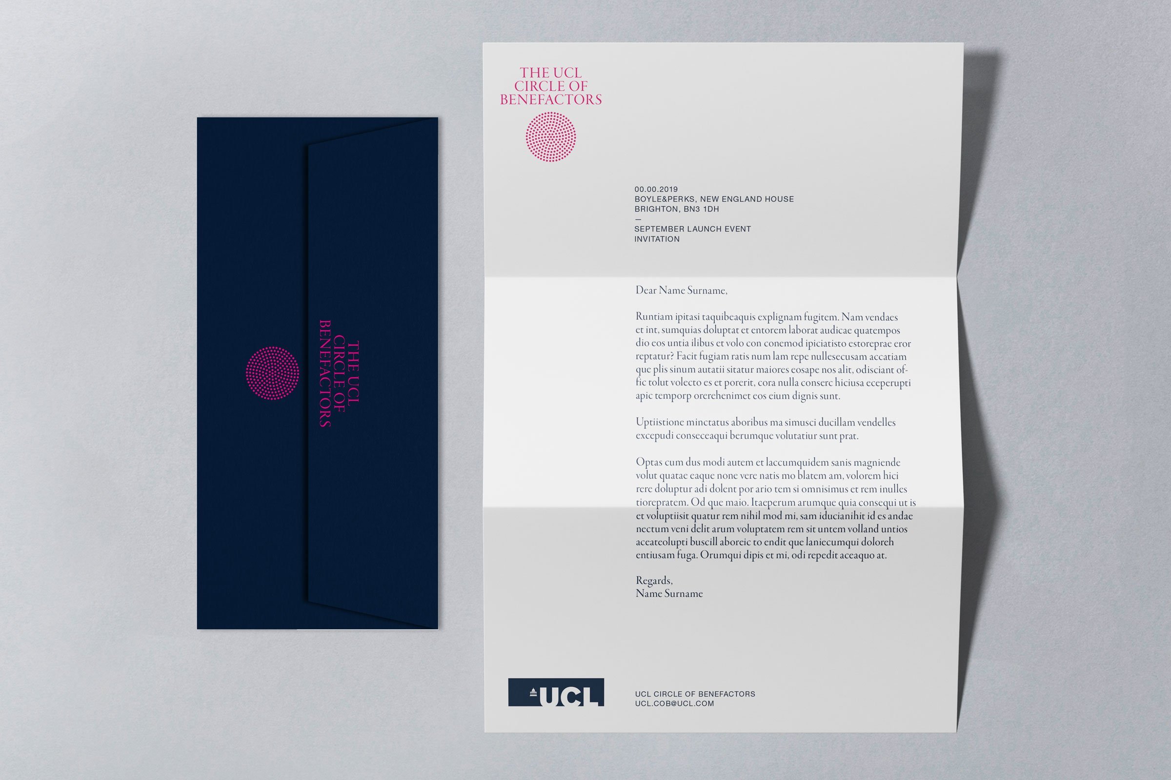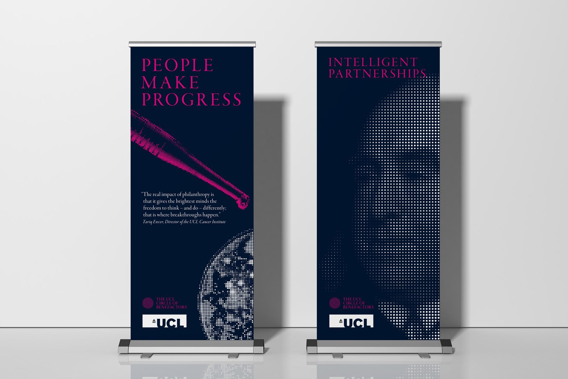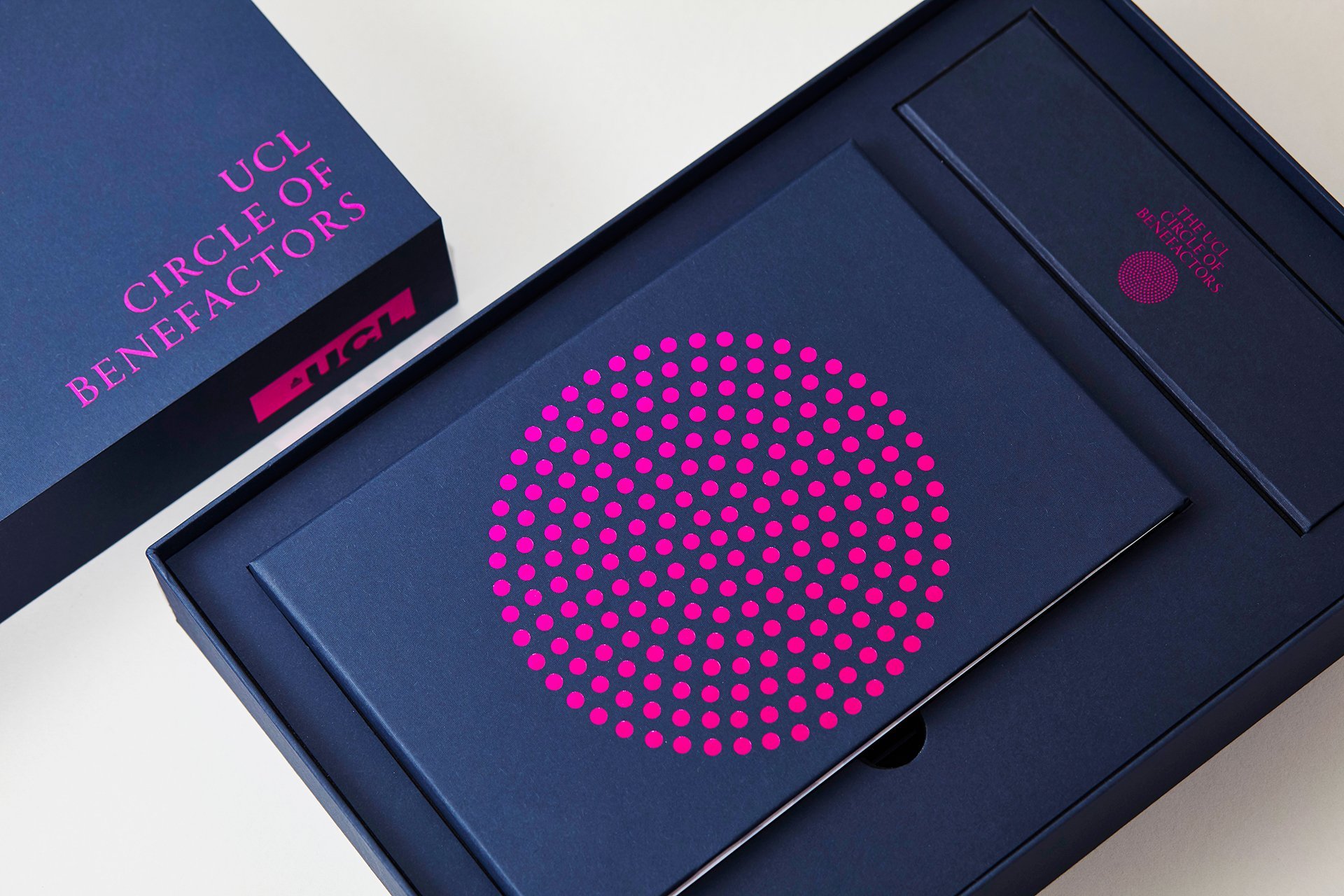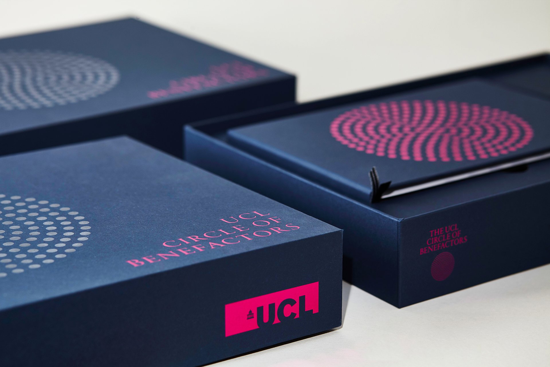 As part of a wide philanthropic and engagement campaign, UCL has launched the Circle of Benefactors. We were asked to create a bold identity that recognises and celebrates donors who have given £1m or more to UCL. Members of the Circle range from individuals and family-run trusts and foundations to national and international businesses and charities. Their impact is wide-ranging and includes support from Pears Foundation to create the unique UCL Centre for Holocaust Education to a coalition of leading retailers such as Iceland, Asda and Waitrose joining together to donate the new plastic bag 5p levy to advance dementia research.