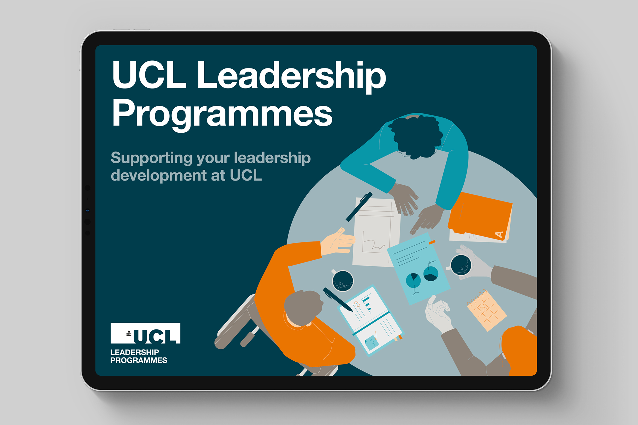 These online and face-to-face learning experiences contribute to the UCL mission by providing the opportunities and tools to support leaders, staff, and research students develop professionally and build careers. We partnered with illustrator Niamh Power to create a visual language and suite of assets to promote the Leadership Programmes.